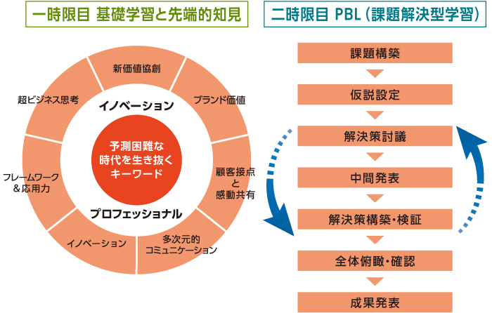 | セミナー概要 | 最前線で活躍する講師陣が提供する最新のマーケティング事例を基に「自分の実務において具体的にどう活用し、どう革新するか」をまとめます。 講座はPBL方式(課題解決型学習)を採用。グループ単位で課題を自ら抽出し、解決に向けた具体案を策定します。 |